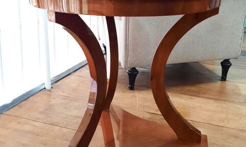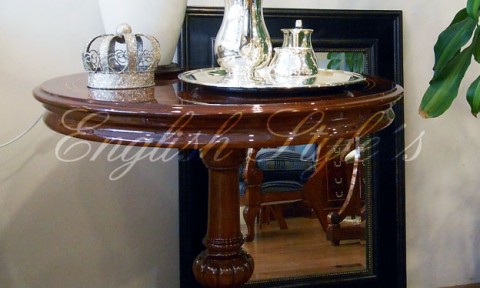 Mesa de costado de living modelo Imperio con tapa redonda, faja tallada y patas curvas.Construida en madera de caoba y pluma de caoba con filetes en madera de guatambú. Lustre Premium con base de poliéster y terminación en poliuretano, brillante. Pedí la tuya en la medida que precises, pudiendo elegir la madera, la base, los