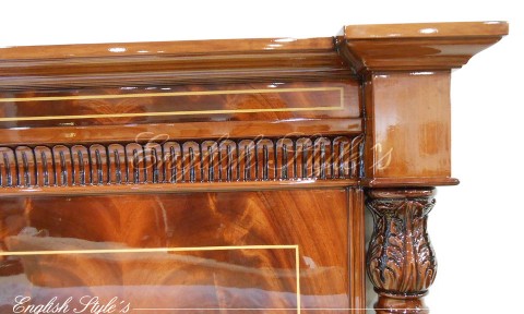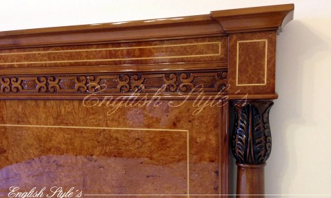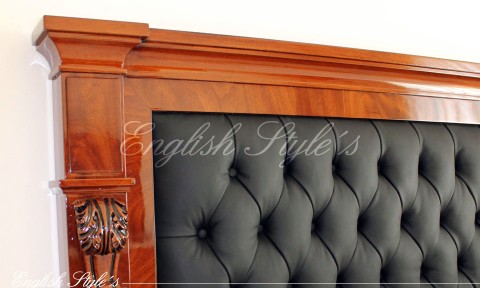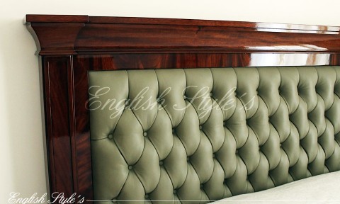 Respaldo de cama modelo Regencia, con columnas talladas y tapizado capitoné. En la foto, terminada en pana sedosa y lustre claro brillante. Pedí la tuya en la medida que quieras, pudiendo elegir la madera, los detalles, el tono y el brillo del lustre. Para más información, contactate con nosotros a través de nuestro WhatsApp: +54
