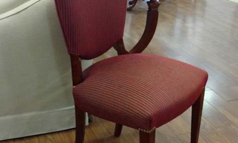 Silla de comedor modelo Hepplewhite con respaldo tapizado. Fabricada en madera de viraró, tapizada en asiento y respaldo, con cinchas de yute, resortes helicoidales de acero y crin vegetal. Pedí la tuya en la tela/cuero que quieras, pudiendo elegir los detalles, el tono y el brillo del lustre. Para más información, contactate con nosotros a