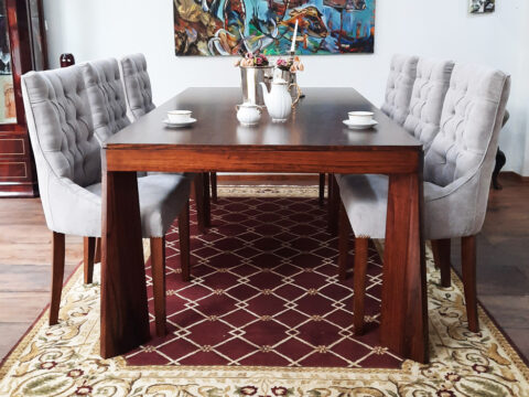 Mesa de comedor Enero. En la foto, modelo de 220 cm x 115 cm, fabricado en madera de paraíso. Pedí la tuya en la medida que necesites, pudiendo elegir la madera, el tono y el brillo del lustre. Para más información, contactate con nosotros a través de nuestro WhatsApp: +54 9 11 5496-1735.También podés enviarnos