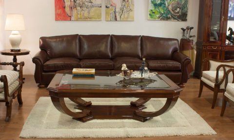 Sofá modelo Primrose con respaldo en capitoné. Fabricado de manera tradicional y sustentable: con resortes, baranda elástica, almohadones de pluma y copos. En la foto, muestra terminada en pana azul. Lustre Premium con base de poliéster y terminación en poliuretano. Pedí el tuyo en la medida que quieras, pudiendo elegir la tela/cuero, las patas, los